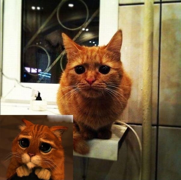 Внимание! Найден кот с 2 Шрека можно идти обнимать.