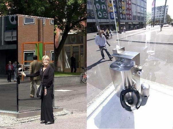 В Лондоне был установлен прозрачный туалет, точнее полупрозрачный. Снаружи он зеркальный, а вот изнутри видно все происходящее на улице.