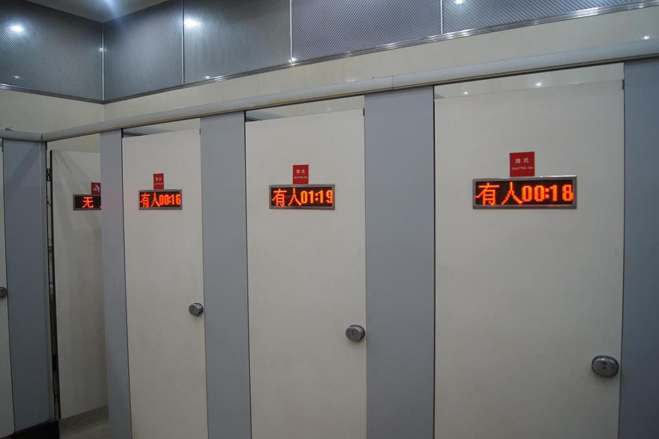 Это туалеты в Шанхае.На дверях таймер показывается,сколько время человек уже провел внутри.