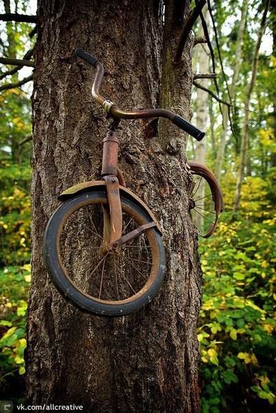 Мальчик оставил свой велосипед прикованным к дереву когда уходил на войну в 1914 году. Он не вернулся, и дереву не оставалось ничего другого, как расти вокруг велосипеда. Невероятно, но этот велосипед находится там уже 98 лет!