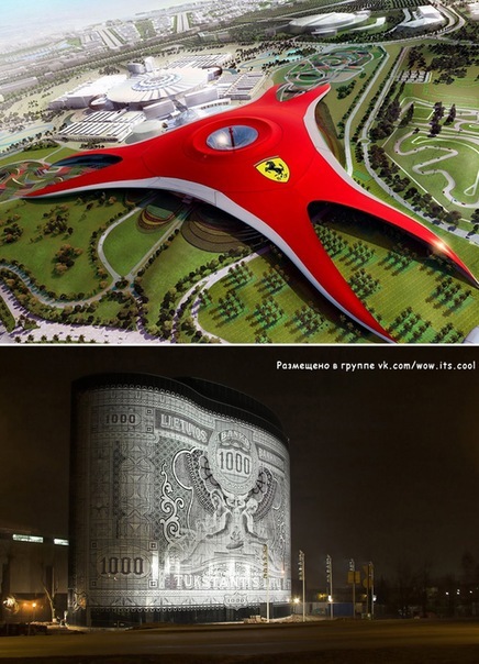 Сверху - Парк развлечений «Ferrari World» в Абу-Даби