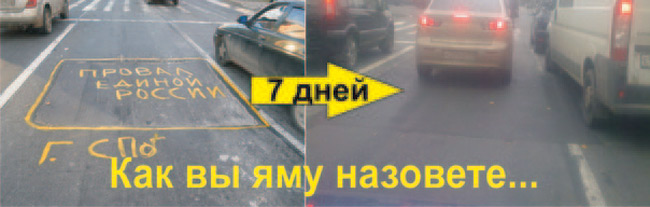 В Питере придумали свой, быстрый способ ремонта дорожного полотна! А еще можно писать что-нить вроде "Путин - вор". Тоже работает!!