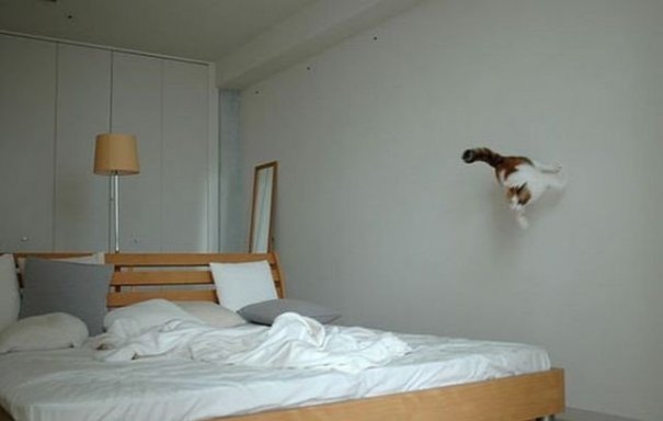 Хих)) У меня кот так же по стенам гоняет)) Паркуристы, блин)