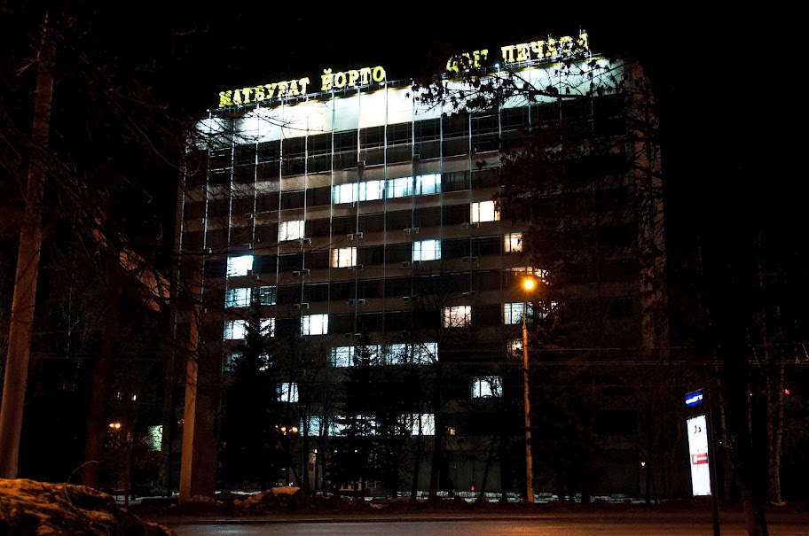 г. Уфа. Всю ночь с 31 марта на 1 апреля Дом печати улыбался уфимцам :)
