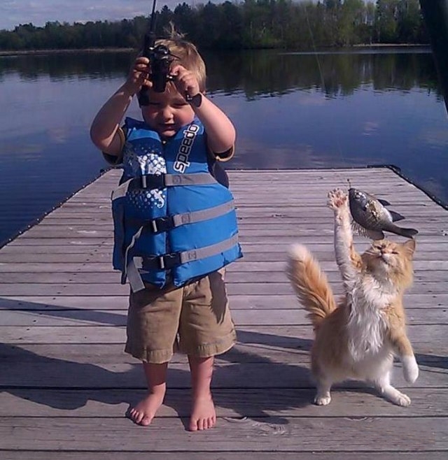 Евгений натаскивает для себя рыбаков с младых ногтей...