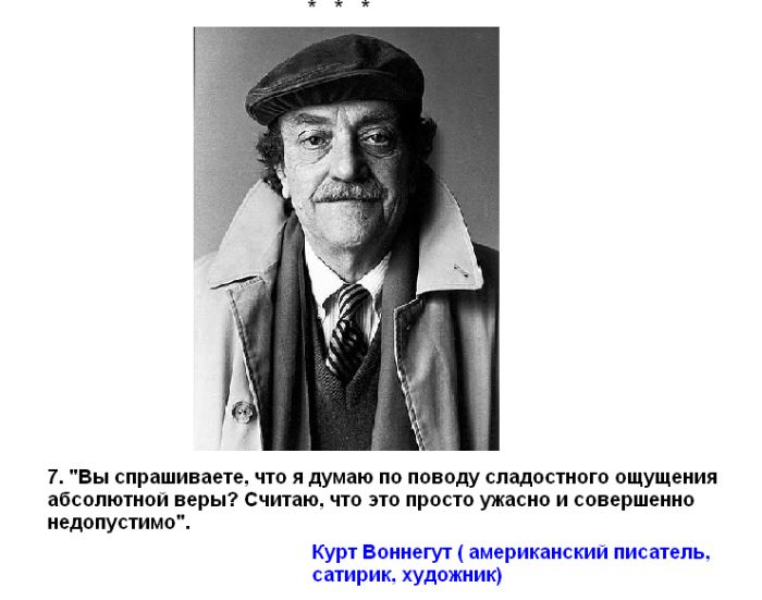 "Легко сделаться атеистом русскому человеку, легче, чем всем остальным во всём мире! И русские не просто становятся атеистами, а непременно уверуют в атеизм, как бы в новую веру, никак того не замечая, что уверовали в нуль".