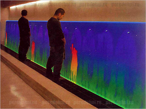 Похоже бум на гаджеты для писсуаров в Японии продолжается. Вслед за игровой приставкой от компании Sega встроенной в писсуары, появилась новинка на этом рынке. Как видно из фотографии, стенка в туалете оснащена чувствительным к повышению температуры слоем, на котором подобно изображению на экране тепловизора отображаются "следы пребывания" в туалете человека. Зрелище получается довольно забавное, ведь каждый может почувствовать себя в роли арт-художника, создающего абстрактные изображения на стене туалета ;-)