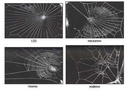 Сети, сплетенные пауками, которых кормили мухами с инъекцией наркотика