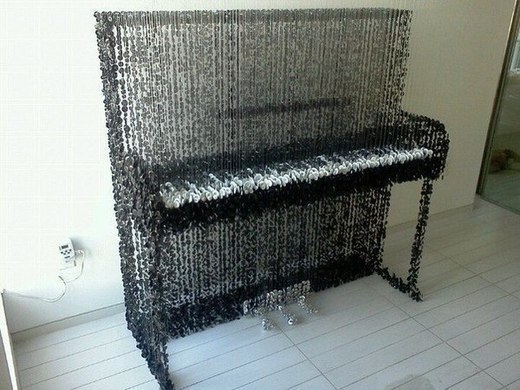 Пианино из пуговиц, которые подвешены на прозрачные нити...