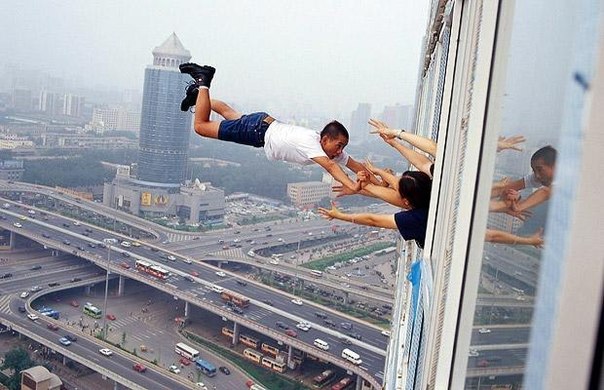 Ли Вэй – китайский художник и фотограф, получивший широкую известность благодаря неординарным фотографиям посвященным «игре на грани», в которых автор искажает реальность, создавая различные иллюзии опасной действительности