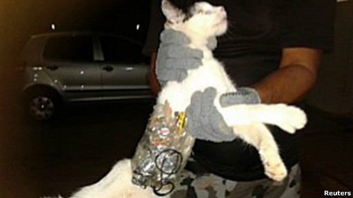 На территории тюрьмы в городе Арапирака в бразильском штате Алагоас был задержан кот, на котором найдены вещи, предназначавшиеся для заключенных. Охранники заметили подозрительное животное, когда оно проходило через главные тюремные ворота.