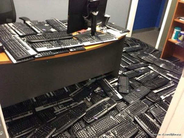 Рабочее место индусского программиста. Все клавиатуры подключены и юзабельны.