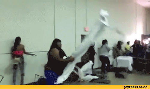 на переднем фоне только сильные спортсмены. чуть позади просматривается дама, метающая все лишь стул. то ли столов на всех не хватило, то ли квалификация не та.