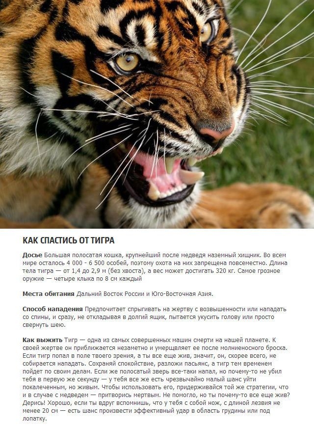 да, еще насчет змей - лучший способ поймать и убить змею - рогатина - прижимает тело змеи к земле и не дает выскользнуть, бить палкой змею очень опасно: нужно уметь бить, вот как надо: ни в коем случае не бейте с оттягом, ни в коем случае не бейте с плеча - змея может обмотаться вокруг палки, а при следующем замахе прилететь к вам, бить следует как клюшкой в хоккее, тогда вы ее отбросите от себя. так же не бейте в землю, бейте чуть выше - у змей очень хорошая реакция и сами они в момент атаки двигаются очень быстро, поэтому нанося удар выше земли на 5-10 см змея сама на удар напорется, атакую палку
