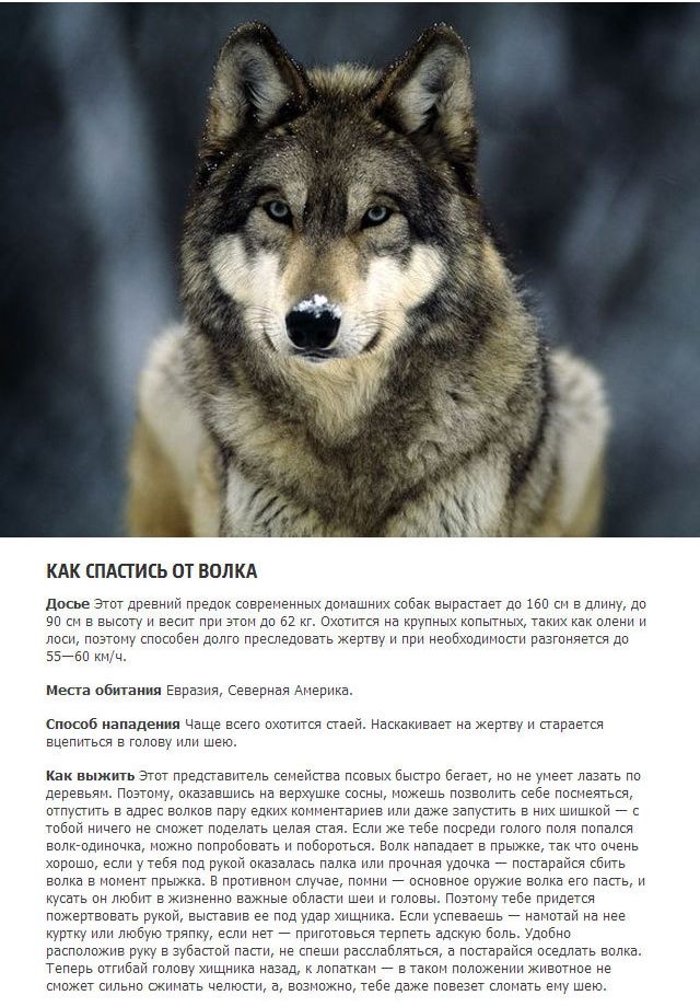 поправка насчет волков: сломать шею как описанно - достаточно сложно, особенно если вы девушка или подросток.