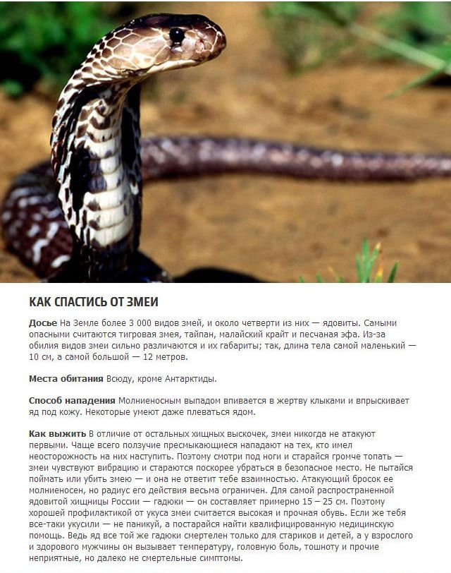 и самое главное: ни в коем случае не трогайте только что убитую змею - они очень живучие и еще успеют вас укусить перед возможной смертью