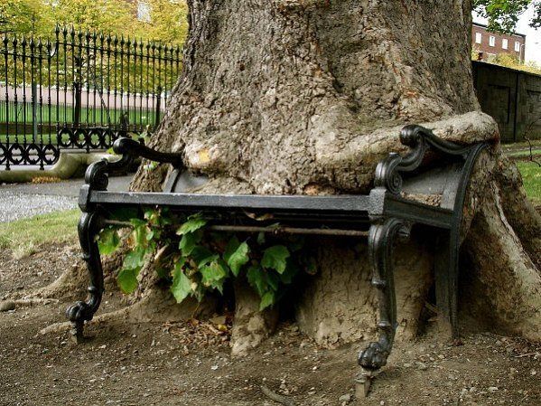 дерево зохавало скамейку