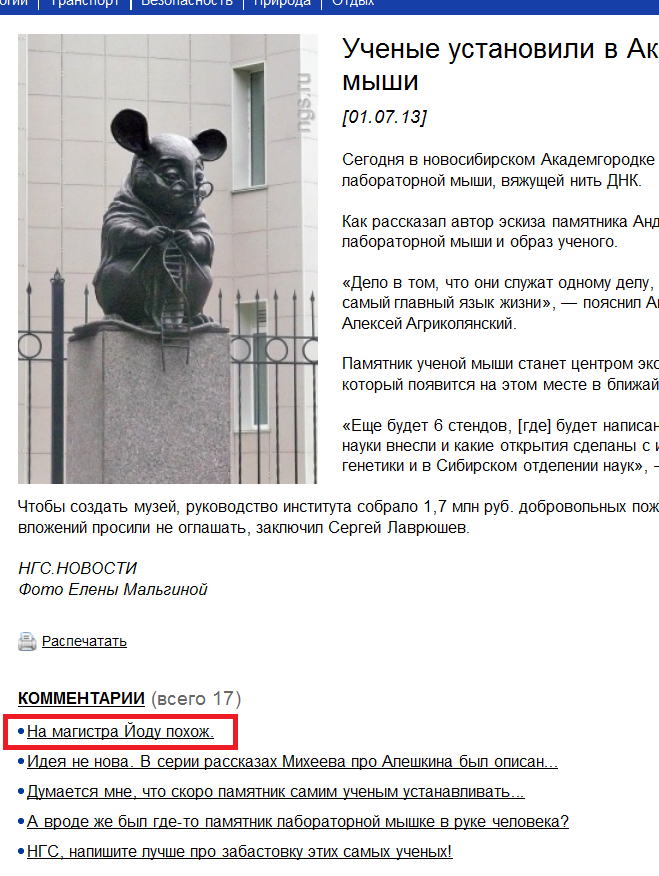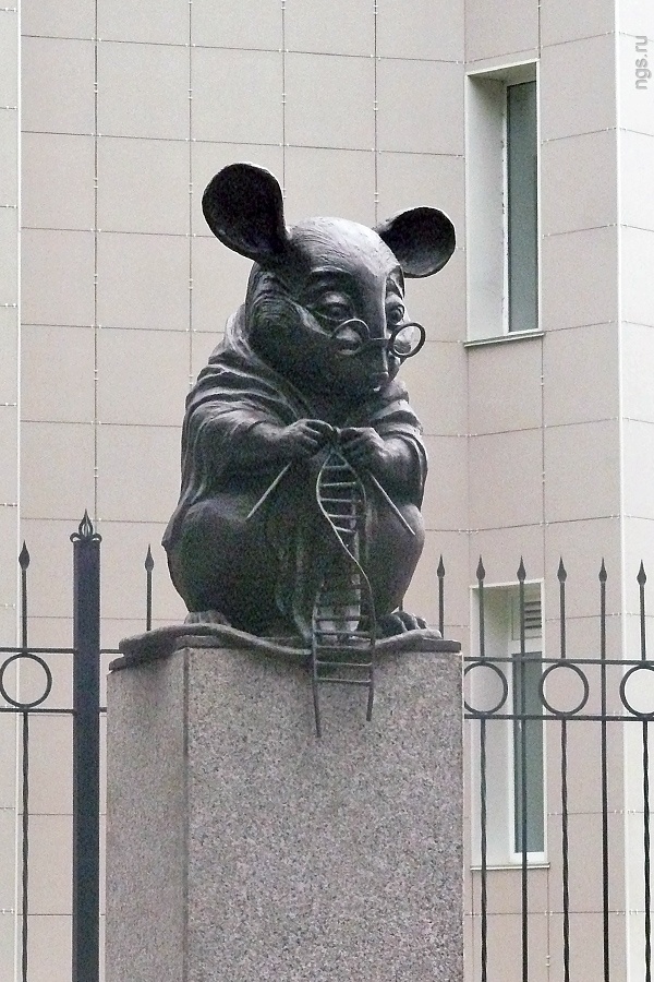 Сегодня в новосибирском Академгородке возле Института цитологии и генетики СО РАН появился памятник лабораторной мыши, вяжущей нить ДНК.