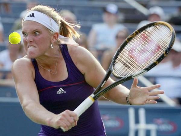 ей даже бить не надо: мячик испугается и сам ускачет куда надо